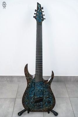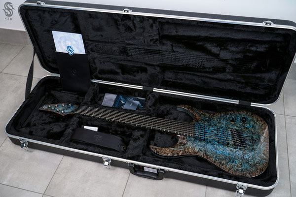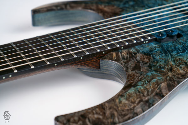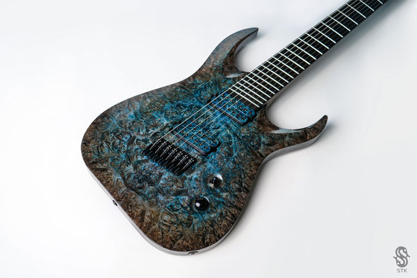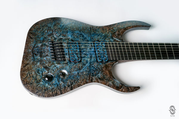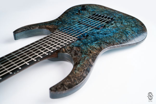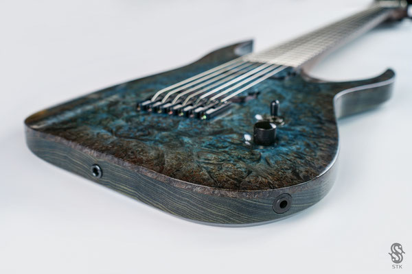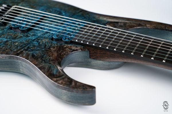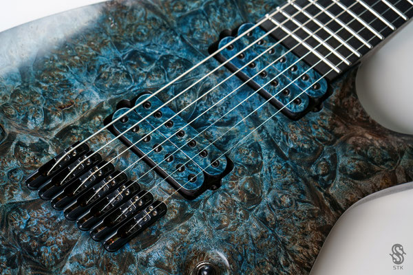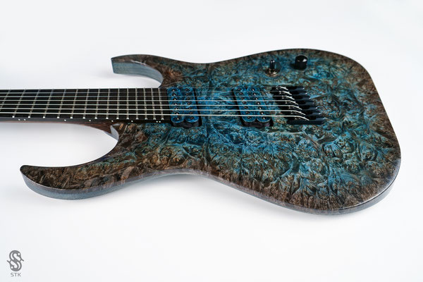 Instrumental SFTY pickups, featuring exclusive STK maple burl covers, crafted from the guitar top.