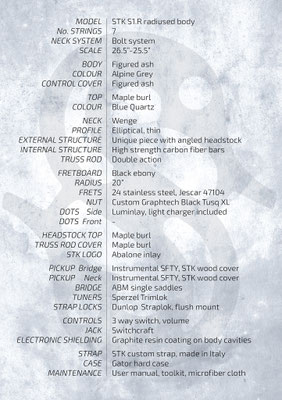 Blue Quartz finish for the top and Alpine Grey finish the body; modern look, superb tone and great feeling to the touch.